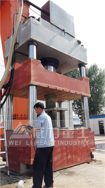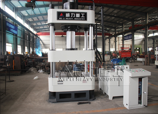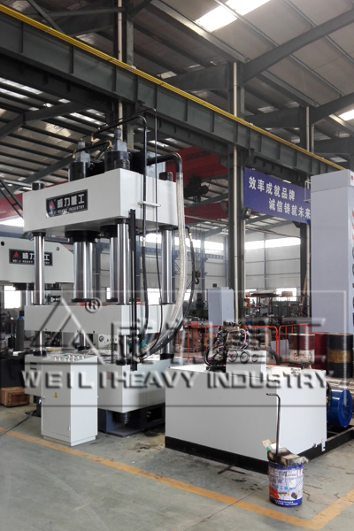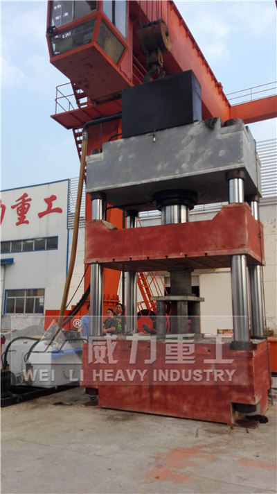 液壓機由主機及控制機構兩大部分組成。液壓機主機部分包括機身、主缸、頂出缸及充液裝置等。動力機構由油箱、高壓泵、低壓控制系統(tǒng)、電動機及各種壓力閥和方向閥等組成。動力機構在電氣裝置的控制下,通過泵和油缸及各種液壓閥實現(xiàn)能量的轉換,調(diào)節(jié)和輸送,完成各種工藝動作的循環(huán)。液壓缸:將液壓能轉化為機械能液壓傳動是利用液體壓力來傳遞動力和進行控制的一種傳動方式。液壓裝置是由液壓泵,液壓缸,液壓控制閥和液壓輔助元件。山東威力重工機床有限公司根據(jù)客戶需求定制非標液壓機。如下圖參考