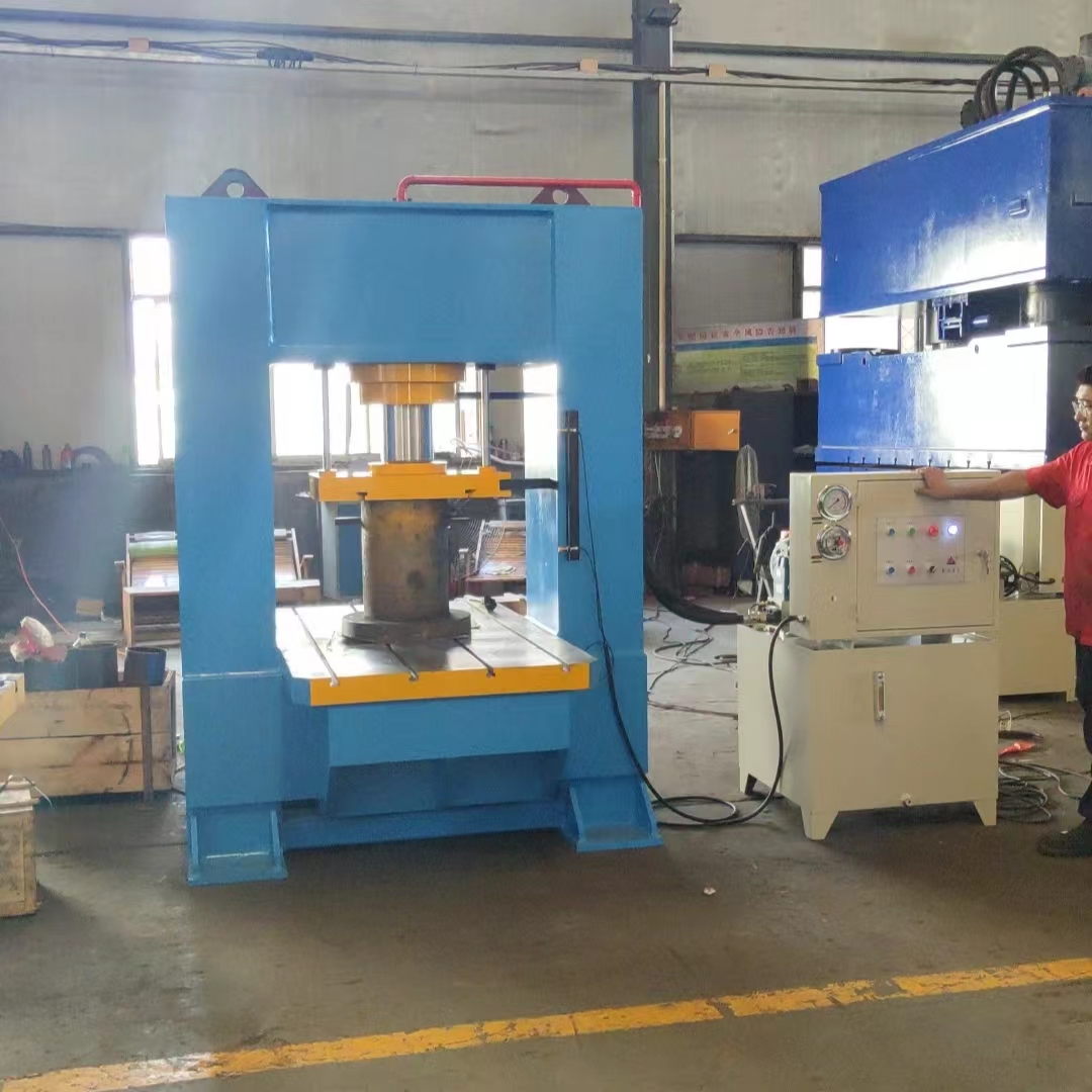 在龍門結構的下方,安裝有液壓系統和壓力裝置,這些裝置能夠提供強大的壓力,將工件壓制成所需的形狀和尺寸。液壓系統通過管道和油缸將壓力傳遞到工件上,確保了壓制的效果和質量。